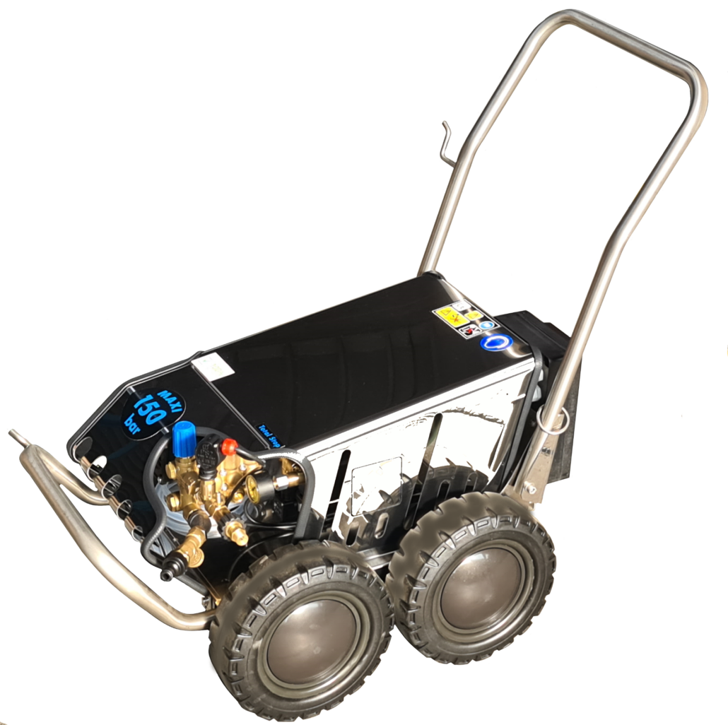 - Heavy-duty spray gun with 10mtr wire braided water blaster hose